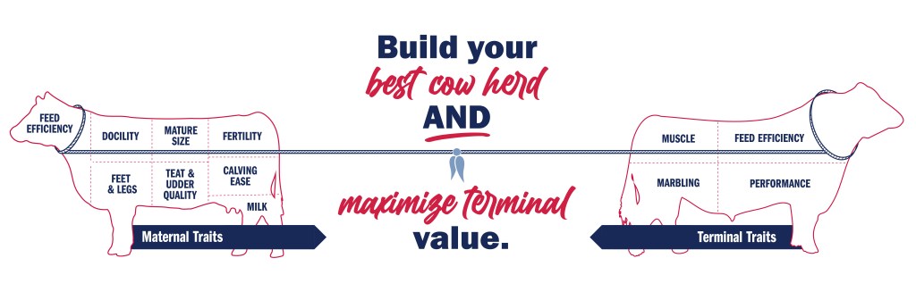 When you select genetics for maternal or terminal, it does not have to be a tug o’ war between the two. For instance, you do not have to worry about choosing too much maternal and compromising the terminal value of calves destined for the beef supply chain. The tools, technology, and genetics available to you today give you the power to choose!
