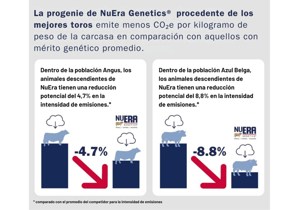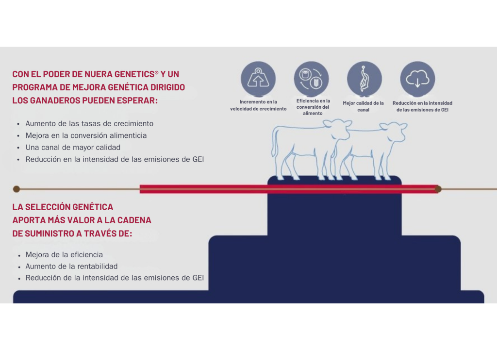 NuEra Genetics ofrece a los ganaderos la oportunidad de producir proteína de mayor calidad y más sostenible. De esta forma, consiguen un menor impacto ambiental y una rentabilidad mejorada. Con el poder de NuEra Genetics y un programa de mejora genética dirigido, los ganaderos pueden crear más con menos, impulsando la eficiencia, la rentabilidad y la reducción de las emisiones de gases de efecto invernadero (GEI) en toda la cadena de suministro.