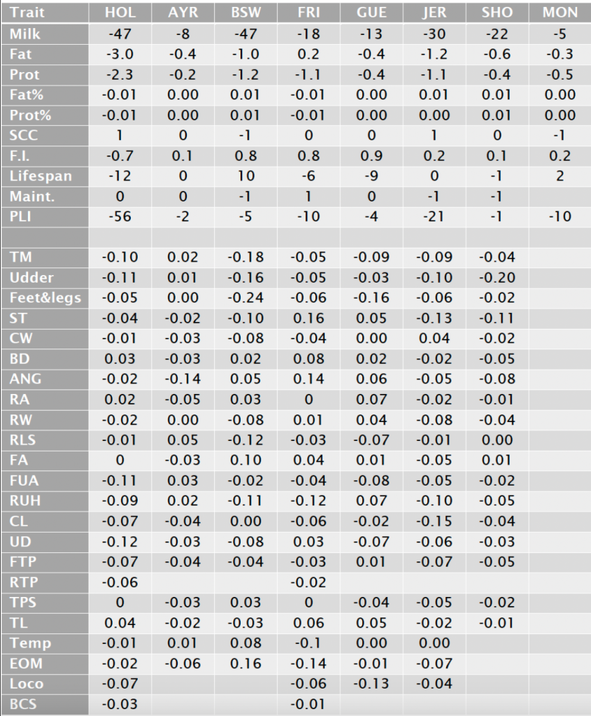 La Evaluación Genética de abril de 2025 reflejó un cambio de base tanto para EE. UU. como para el Reino Unido. En EE. UU., este cambio ocurre cada cinco años, mientras que en el Reino Unido cambia anualmente. Cabe recordar que un cambio de base es una recalibración de la población a cero para reflejar el progreso genético. Considere un cambio de base como un informe de progreso genético.