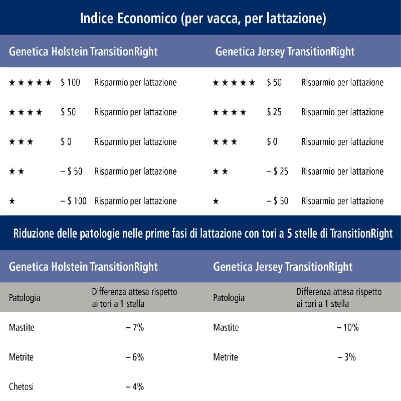 “TransitionRight è stato scientificamente convalidato dal nostro team di genetisti utilizzando un robusto database di lattazioni e dati genomici Real World Data provenienti da allevamenti commerciali di tutto il mondo. La prova è nei nostri dati. I nostri clienti possono migliorare l’efficienza e i loro profitti semplicemente utilizzando genetica TransitionRight.”