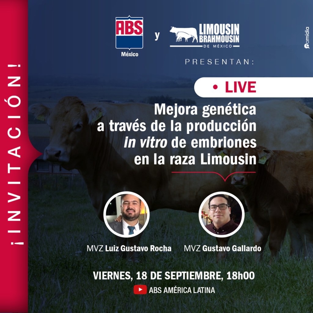 Mejora genética a través de la producción in vitro de embriones en la raza Limousin será objeto de una charla entre los veterinarios Luiz Gustavo Rocha y Gustavo Gallardo, el 18 de septiembre, a las 18h, en transmisión en vivo a través de canal de YouTube ABS América Latina. La acción está organizada por ABS México y Limousin Brahmousin de México.