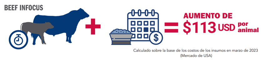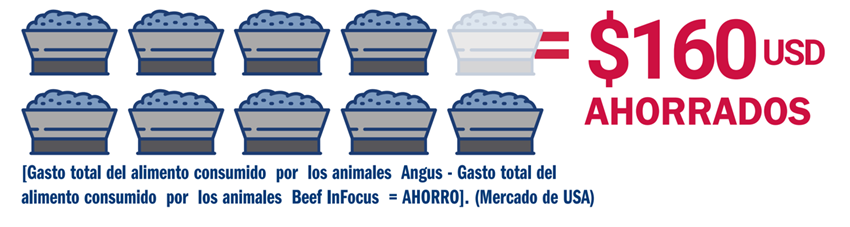 Resultados. En total, el ganado Beef InFocus generó $113 dólares más por cabeza al final del ensayo. Los toros mejoran la rentabilidad porque están diseñados para los factores que realmente importan en la cadena cárnica: crecimiento, consumo de alimento y calidad de canal. Analicemos los resultados: