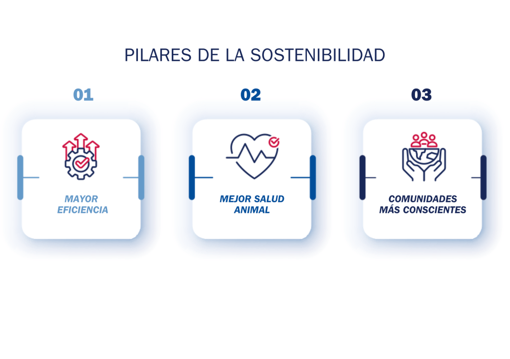 Para nosotros, la sostenibilidad incluye la creación de prácticas éticas que cuiden el medio ambiente, apoyen el bienestar animal y promuevan la diversidad genética en el ganado. Esto asegura los medios de vida agrícolas, mejora la seguridad alimentaria, proporciona productos ganaderos de calidad y contribuye a reducir el impacto ambiental.