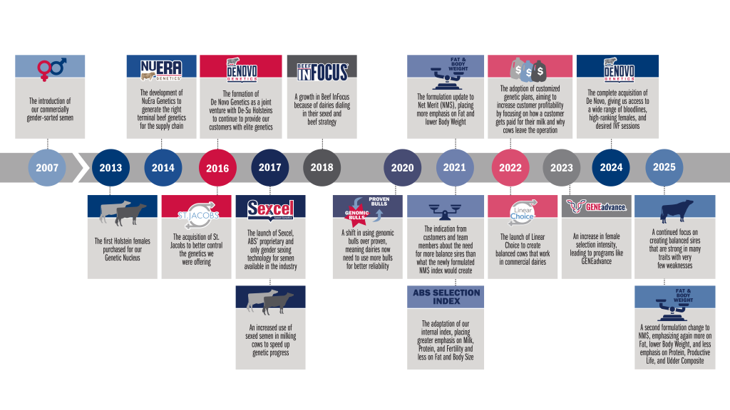 This means genetics companies must uphold strong breeding programs to ensure success for producers who prioritize genetic diversity. However, it’s safe to say not everyone takes this as seriously as we do, which is unfortunate. Your future depends on it. ABS has been taking steps to maintain strong genetic diversity within our nucleus for years now.